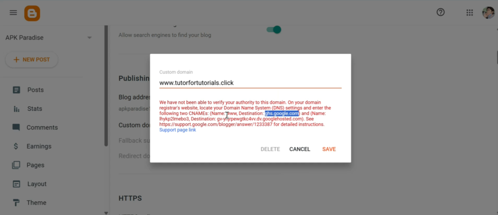 Step 4: Add Your Custom Domain in Blogger