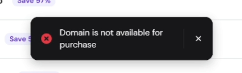 If you try to add the same domain again, you’ll see an error stating that the domain is no longer available, which confirms that the purchase was successful.