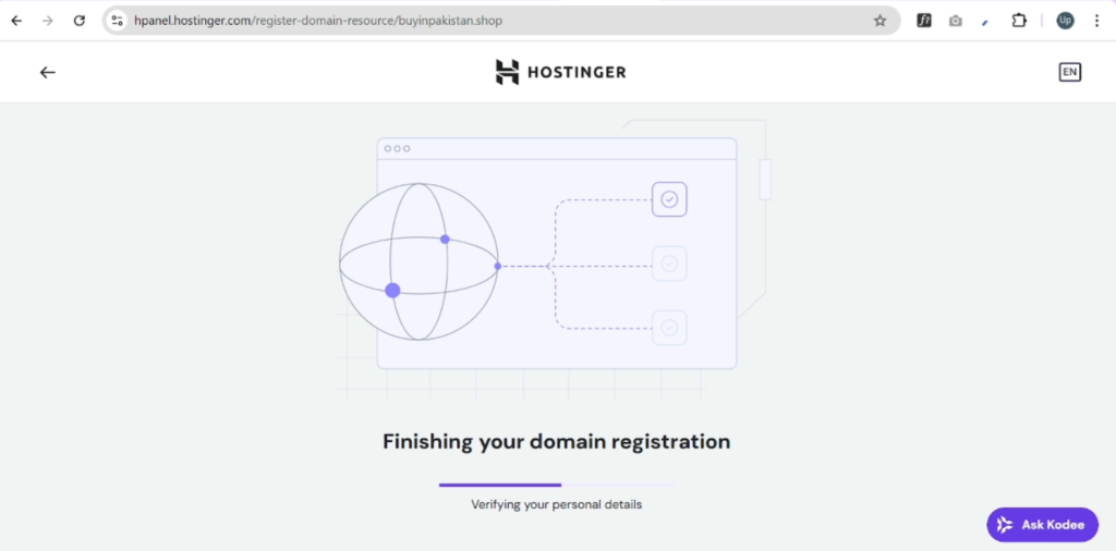 The system will take a few moments to complete the registration. Once finished, your domain will be ready to use.