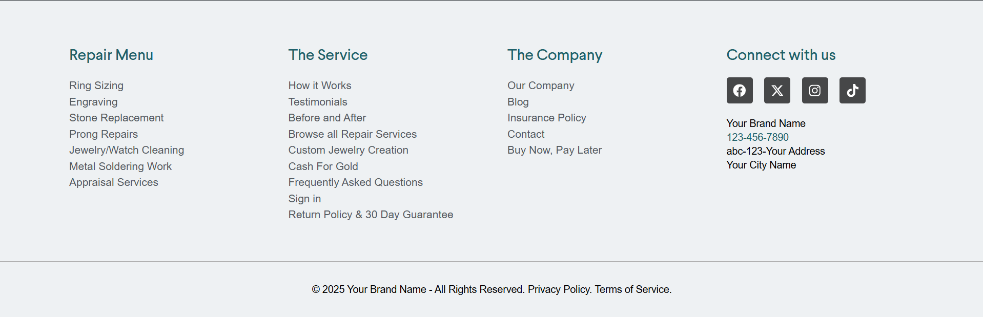 Whether you are selling products online, a local jewelry repair service, an engaging blog, or a corporate site, this fantastic footer template will put your brand in a more professional position and a trustworthy position.